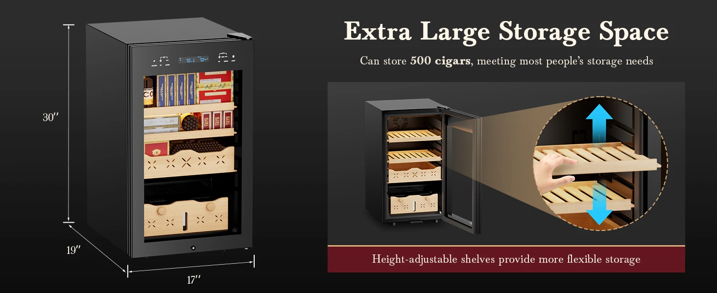 Large Capacity Design: 65L storage fits up to 500 cigars